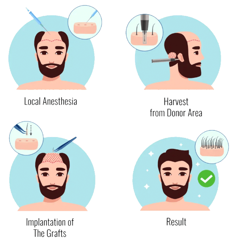 In this process, a surgeon uses the advanced least invasive technique to extract individual hairs from the donor area, usually the back of the head, by making hundreds to thousands of tiny punch incisions. These follicles are then relocated to the donor’s site by making tiny holes in the area. After the transplant, the head is covered with gauze or bandages for a few days. In this process, hundreds and thousands of hair follicles are transplanted simultaneously.